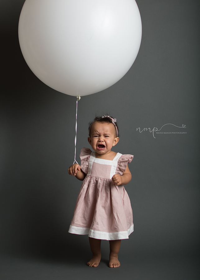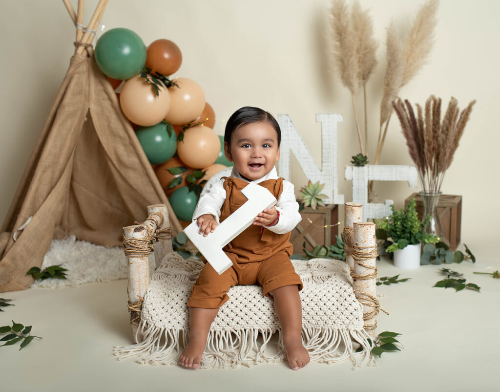The choice is completely up to you. The session includes photos taken prior to the cake smash, allowing for a different outfit and providing you with a variety of poses. While the cake smash is a heap of fun and a favorite among many clients, it’s essential to remember that a birthday session doesn’t need to be messy if that’s not your preference. If you lean towards regular portraits, themed or unthemed, that’s entirely possible too. And especially for an outdoor setting, giant balloons are absolutely adorable.