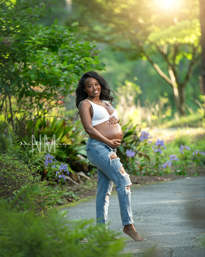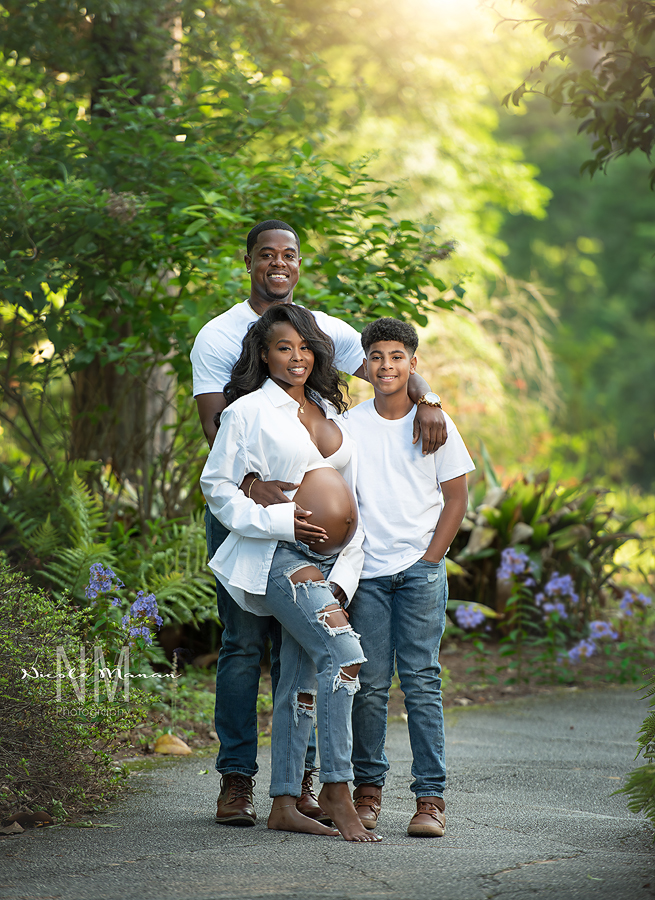 Expecting her second little one, this mom got in touch to plan an outdoor maternity photo shoot. She was not familiar with the Columbus GA area but she had spotted a photo on my website taken at Callaway Gardens that she absolutely loved. Her vision was a mix of goddess-like glamour surrounded by nature’s beauty, along with some relaxed poses in jeans and a white tee, all while including her family. The session was a stunner, and luck was on our side with pleasant morning temperatures at Callaway. The photos turned out to be absolutely breathtaking!